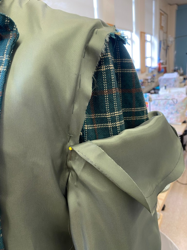 (Patterning from the original lining, Cutting, Pinning, Sewing)